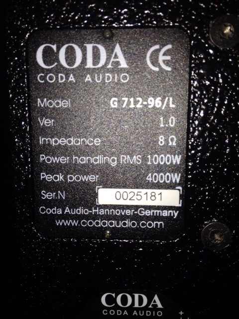 | Low frequency: | 12” neodymium woofer, 4” (101.6 mm) voice coil, 1000 W (AES) |